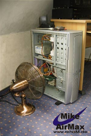 X-treme Cooling: Sehr ernst zu nehmen ist dieses Bild nicht gerade. Aber eine echt ausreichende Frischluftzufuhr. Nicht besonders leise und Platz sparend aber sehr dekorativ und individuell.